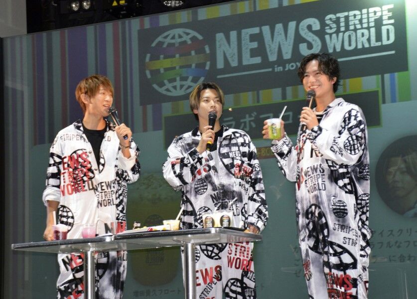 NEWSが、東京ジョイポリスで行われた「NEWS STRIPE WORLD IN JOYPOLICE」の記者会見に登場という話題です。ファンの方には嬉しいイベントとなりそうですね(^.^)