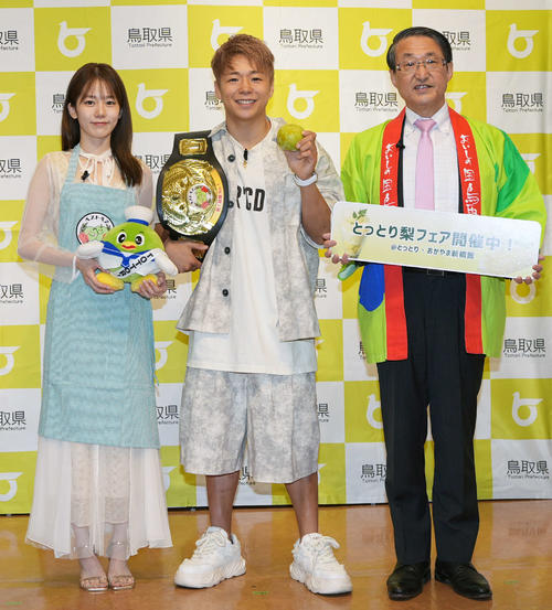 | 武尊、結婚発表後初めて夫婦で登場…結婚式よりも早いケーキ入刀に「まさかさきにここでやるとは…」 元K―1三階級制覇王者の武尊が8日、都内で鳥取県「ベストペア(=梨)賞」任命式に、7月に結婚を発表した川口葵とともに登場。この日が結婚後、初のイベント登壇となった。 (出典:スポーツ報知) |